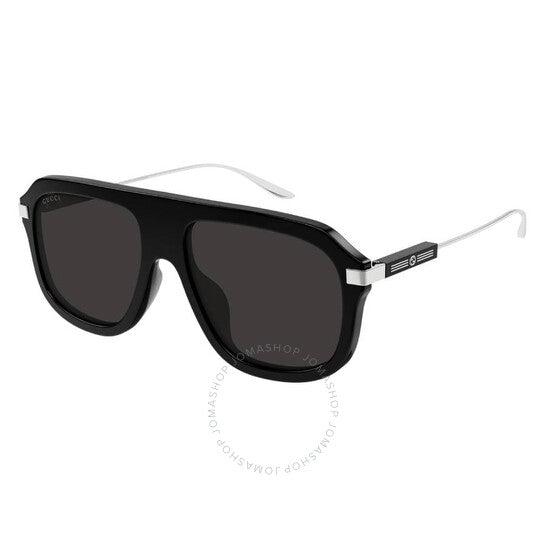 نظارات شمسية من غوتشي. رقم السلسلة: GG1309S. رمز اللون: 005. الشكل: نافيجيتور. عرض العدسة: 57 مم. جسر العدسة: 17 مم. طول الذراع: 145 مم. حماية 100% من الأشعة فوق البنفسجية. غير مستقطبة. مادة الإطار: أسيتات؛ معدن. لون الإطار: أسود/فضي لامع. نوع العدسات: رمادي. نمط الحافة: حافة كاملة. رمز UPC/EAN: 889652438535. نظارات شمسية غوتشي رمادية نافيجيتور للرجال GG1309S 005 57.
