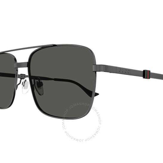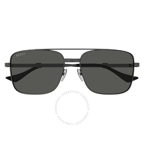 نظارات شمسية من غوتشي. رقم السلسلة: GG1441S. رمز اللون: 001. الشكل: نافيجيتور. عرض العدسة: 58 مم. جسر العدسة: 16 مم. طول الذراع: 145 مم. حماية 100% من الأشعة فوق البنفسجية. غير مستقطبة. مادة الإطار: معدن. لون الإطار: روثينيوم. نوع العدسات: رمادي. نمط الحافة: حافة كاملة. رمز UPC/EAN: 889652440019. نظارات شمسية غوتشي رمادية نافيجيتور للرجال GG1441S 001 58.
