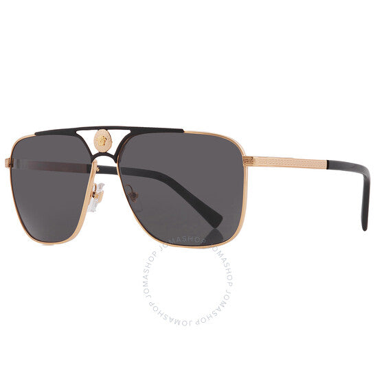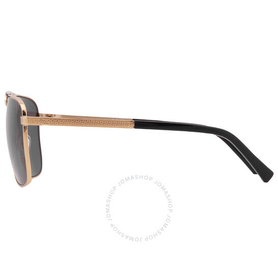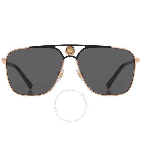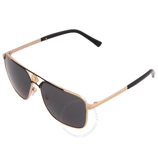نظارات شمسية من فيرساتشي. رقم السلسلة: VE2238. رمز اللون: 143687. الشكل: نافيجيتور. عرض العدسة: 61 مم. جسر العدسة: 13 مم. طول الذراع: 140 مم. حماية 100% من الأشعة فوق البنفسجية. غير مستقطبة. مادة الإطار: معدن. لون الإطار: ذهبي/أسود مطفي. نوع العدسات: رمادي. نمط الحافة: حافة كاملة. رمز UPC/EAN: 8056597523493. نظارات شمسية فيرساتشي رمادية نافيجيتور للرجال VE2238 143687 61.