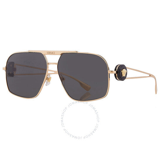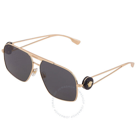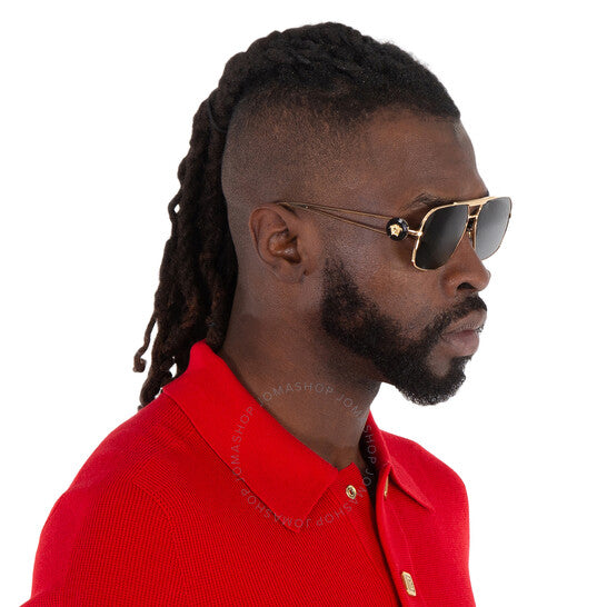 نظارات شمسية من فيرساتشي. رقم السلسلة: VE2269. رمز اللون: 100287. الشكل: نافيجيتور. عرض العدسة: 62 مم. جسر العدسة: 13 مم. طول الذراع: 130 مم. حماية 100% من الأشعة فوق البنفسجية. غير مستقطب. مادة الإطار: معدن. لون الإطار: ذهبي. نوع العدسات: رمادي. نمط الحافة: حافة كاملة. رمز UPC/EAN: 8056262032039. نظارات شمسية فيرساتشي رمادية نافيجيتور للرجال VE2269 100287 62.