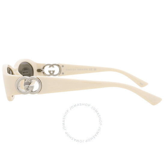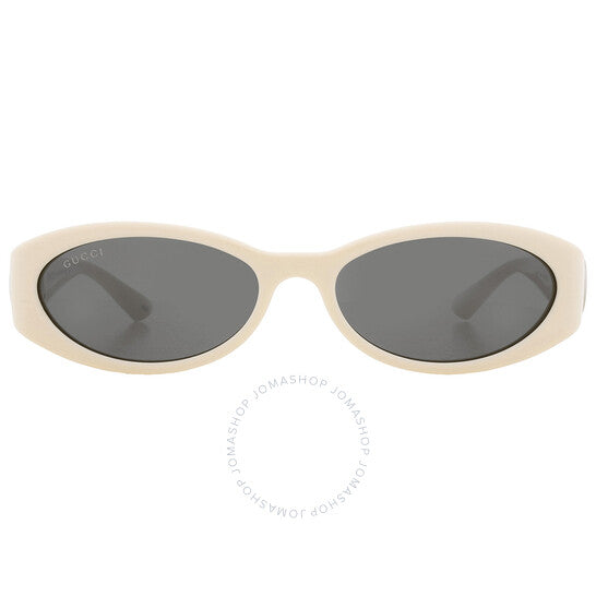 نظارات شمسية من غوتشي. رقم السلسلة: GG1660S. رمز اللون: 004. الشكل: بيضاوي. عرض العدسة: 54 مم. جسر العدسة: 16 مم. طول الذراع: 135 مم. حماية 100% من الأشعة فوق البنفسجية. غير مستقطبة. مادة الإطار: بلاستيك. لون الإطار: عاجي. نوع العدسات: رمادي. نمط الحافة: حافة كاملة. رمز UPC/EAN: 889652494852. نظارات شمسية غوتشي رمادية بيضاوية نسائية GG1660S 004 54.