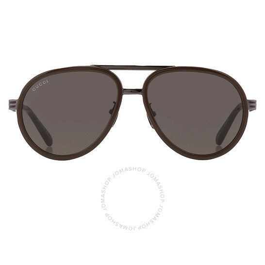 نظارات شمسية من غوتشي. رقم السلسلة: GG0982S. رمز اللون: 001. الشكل: طيار. عرض العدسة: 59 مم. جسر العدسة: 16 مم. طول الذراع: 145 مم. حماية 100% من الأشعة فوق البنفسجية. غير مستقطبة. مادة الإطار: معدن. لون الإطار: روثينيوم/بني. نوع العدسات: رمادي. نمط الحافة: حافة كاملة. رمز UPC/EAN: 889652341613. نظارات شمسية غوتشي رمادية بايلوت للرجال GG0982S 001 59.