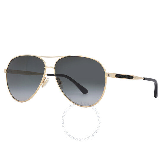 نظارات شمسية من جيمي تشو. رقم السلسلة: JIMENA/S. رمز اللون: 02M2/9O. الشكل: طيار. عرض العدسة: 60 مم. جسر العدسة: 12 مم. طول الذراع: 145 مم. حماية 100% من الأشعة فوق البنفسجية. مادة الإطار: معدن. لون الإطار: أسود ذهبي. نوع العدسات: رمادي مظلل. نمط الحافة: حافة كاملة. رمز UPC/EAN: 716736769134. نظارات شمسية نسائية من جيمي تشو، رمادية مظللة، JIMENA/S 02M2/9O 60.