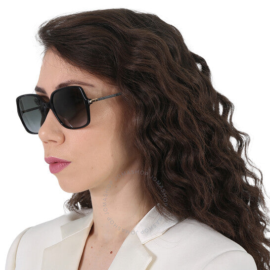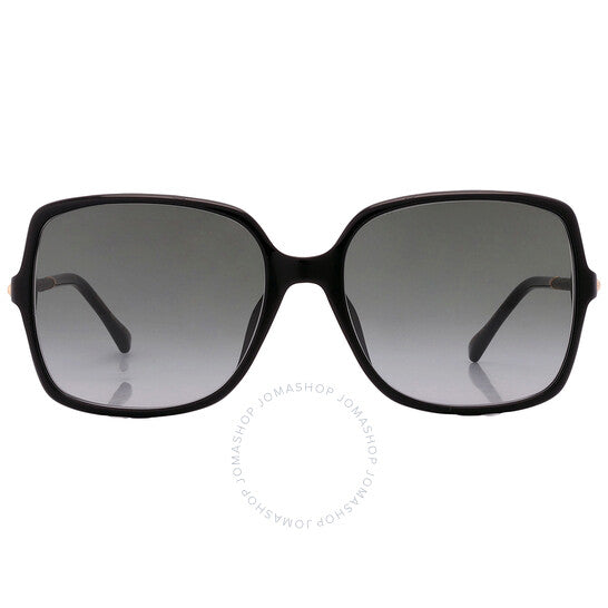 نظارات شمسية من جيمي تشو. رقم السلسلة: EPPIE/G/S. رمز اللون: 0807/9O. الشكل: مربع. عرض العدسة: 57 مم. جسر العدسة: 18 مم. طول الذراع: 140 مم. حماية 100% من الأشعة فوق البنفسجية. مادة الإطار: بلاستيك. لون الإطار: أسود. نوع العدسات: رمادي مظلل. نمط الحافة: حافة كاملة. رمز UPC/EAN: 716736429236. نظارات شمسية جيمي تشو رمادية مظللة مربعة للنساء، EPPIE/G/S 0807/9O 57.
