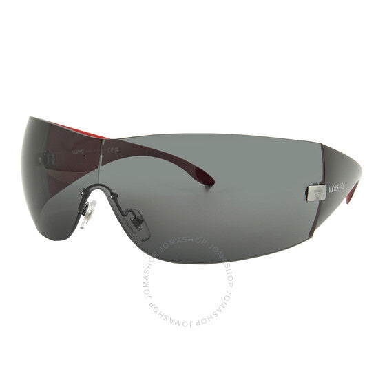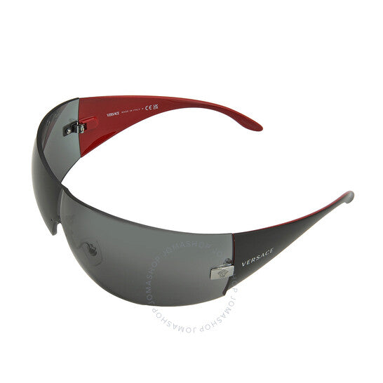 نظارات شمسية من فيرساتشي. رقم السلسلة: VE2054. رمز اللون: 100187. الشكل: درع. عرض العدسة: 141 مم. جسر العدسة: 0 مم. طول الذراع: 115 مم. حماية 100% من الأشعة فوق البنفسجية. غير مستقطبة. مادة الإطار: بلاستيك. لون الإطار: رصاصي. نوع العدسات: رمادي. نمط الحافة: بدون حافة. رمز UPC/EAN: 725125505857. نظارات شمسية فيرساتشي رمادية درع نسائية VE2054 100187 141.