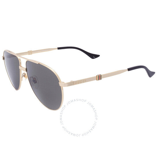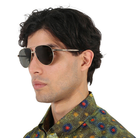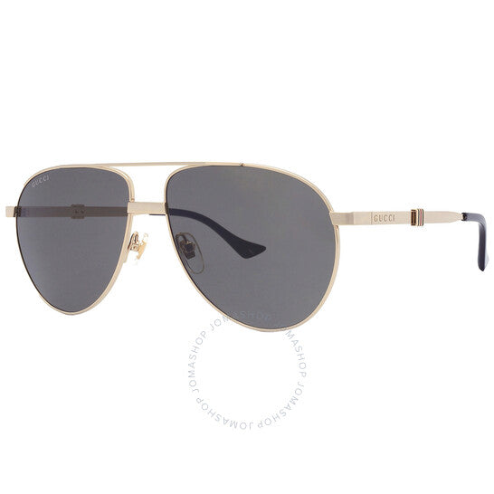 نظارات شمسية من غوتشي. رقم السلسلة: GG1440S. رمز اللون: 001. الشكل: طيار. عرض العدسة: 59 مم. جسر العدسة: 14 مم. طول الذراع: 145 مم. حماية 100% من الأشعة فوق البنفسجية. غير مستقطبة. مادة الإطار: معدن. لون الإطار: ذهبي. نوع العدسات: رمادي دخاني. نمط الحافة: حافة كاملة. رمز UPC/EAN: 889652439969. نظارات شمسية غوتشي رمادية دخانية بايلوت للرجال GG1440S 001 59.