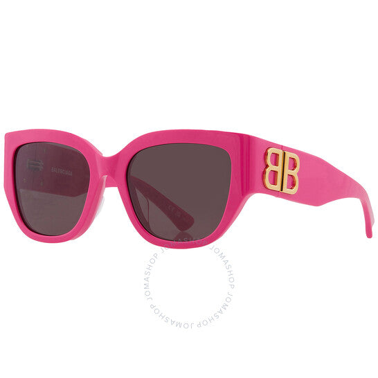 نظارات شمسية من بالنسياغا. رقم السلسلة: BB0323SK. رمز اللون: 005. الشكل: مربع. عرض العدسة: 55 مم. جسر العدسة: 19 مم. طول الذراع: 125 مم. حماية 100% من الأشعة فوق البنفسجية. غير مستقطبة. مادة الإطار: أسيتات معاد تدويره. لون الإطار: وردي. نوع العدسات: رمادي. نمط الحافة: حافة كاملة. رمز UPC/EAN: 889652471532. نظارات شمسية من بالنسياغا رمادية مربعة للنساء، BB0323SK 005 55.