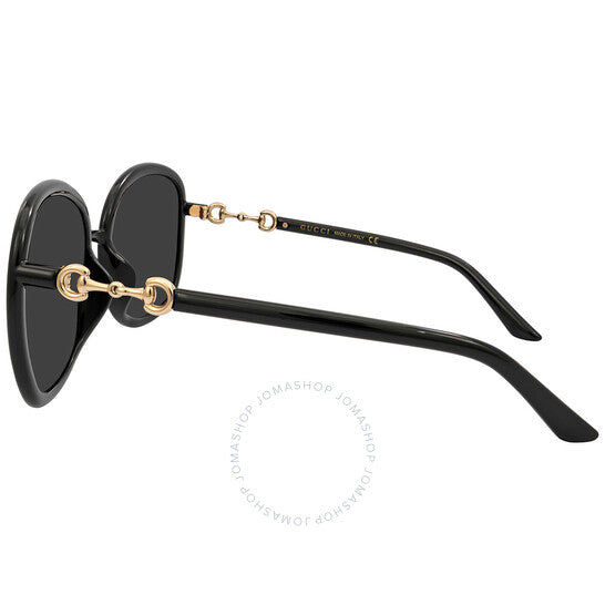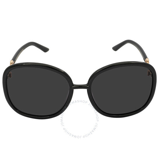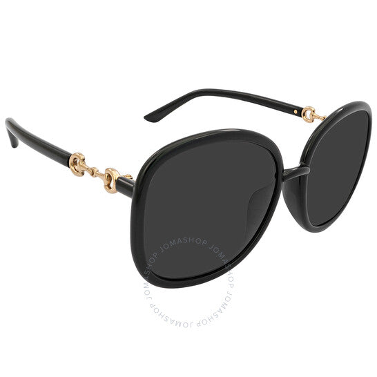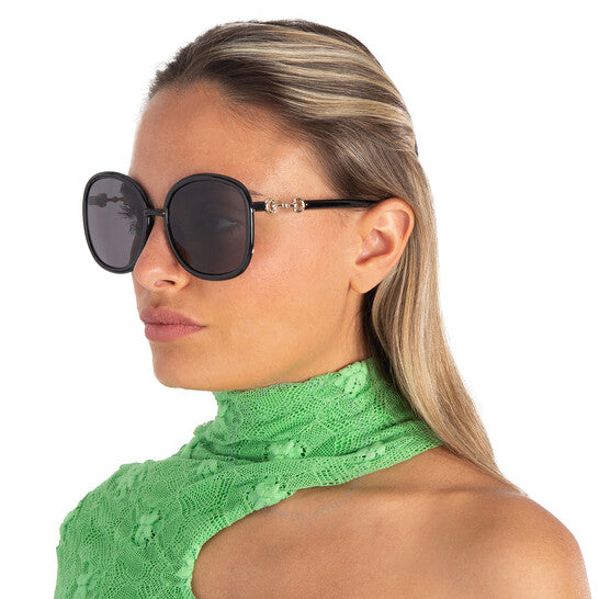 نظارات شمسية من غوتشي. رقم السلسلة: GG0892SA. رمز اللون: 001. الشكل: مربع. عرض العدسة: 60 مم. جسر العدسة: 19 مم. طول الذراع: 145 مم. حماية 100% من الأشعة فوق البنفسجية. مادة الإطار: بلاستيك. لون الإطار: أسود. نوع العدسات: رمادي. نمط الحافة: حافة كاملة. رمز UPC/EAN: 889652323305. نظارات شمسية غوتشي رمادية مربعة نسائية GG0892SA 001 60.