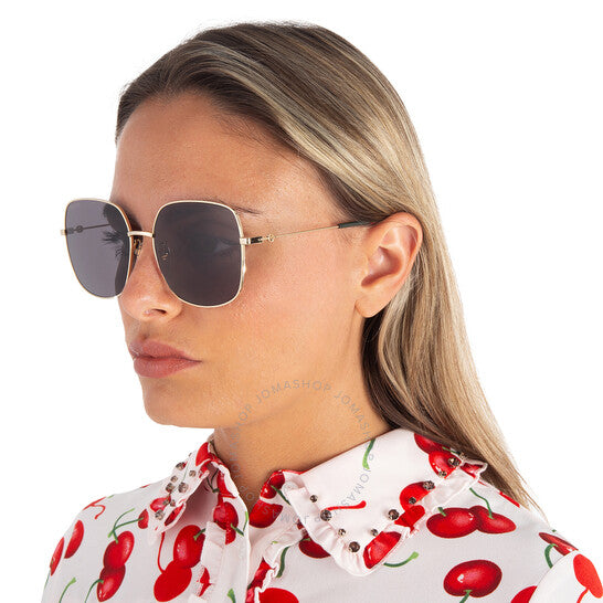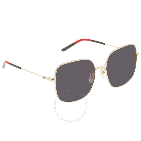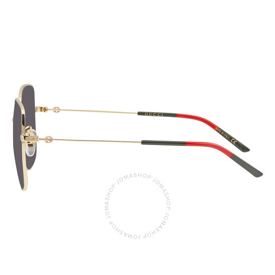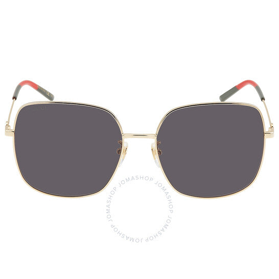 نظارات شمسية من غوتشي. رقم السلسلة: GG1195SK. رمز اللون: 003. الشكل: مربع. عرض العدسة: 59 مم. ارتفاع العدسة: 53 مم. جسر العدسة: 17 مم. طول الذراع: 145 مم. حماية 100% من الأشعة فوق البنفسجية. مادة الإطار: معدن. لون الإطار: ذهبي. نوع العدسات: رمادي. نمط الحافة: حافة كاملة. رمز UPC/EAN: 889652394923. نظارات شمسية غوتشي رمادية مربعة نسائية GG1195SK 003 59.