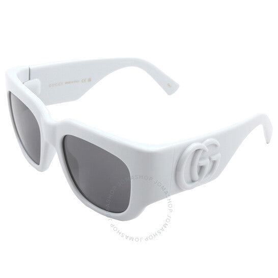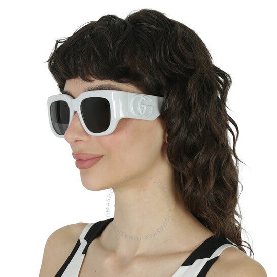 نظارات شمسية من غوتشي. رقم السلسلة: GG1545S. رمز اللون: 003. الشكل: مربع. عرض العدسة: 53 مم. جسر العدسة: 20 مم. طول الذراع: 140 مم. حماية 100% من الأشعة فوق البنفسجية. غير مستقطبة. مادة الإطار: بلاستيك. لون الإطار: رمادي. نوع العدسات: رمادي. نمط الحافة: حافة كاملة. رمز UPC/EAN: 889652467214. نظارات شمسية غوتشي رمادية مربعة نسائية GG1545S 003 53.