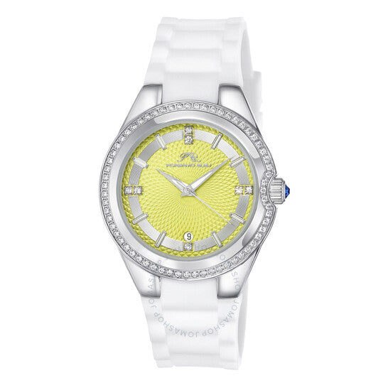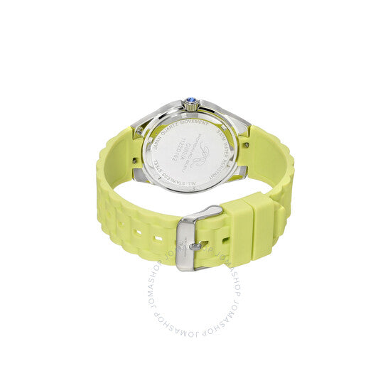 علبة من الفولاذ المقاوم للصدأ فضية اللون مع سوار سيليكون أخضر. إطار ثابت من الفولاذ المقاوم للصدأ فضي اللون. ميناء أخضر مع عقارب فضية اللون وعلامات ساعات. نوع الميناء: تناظري. عرض التاريخ عند موضع الساعة السادسة. حركة كوارتز ميوتا كاليبر GM10. زجاج معدني مقاوم للخدش. غطاء خلفي صلب. شكل العلبة دائري، مقاسها: 37 مم. مشبك بإبزيم. مقاومة للماء حتى عمق 30 مترًا / 100 قدم. الوظائف: التاريخ، الساعة، الدقائق، الثواني. معلومات إضافية: تأتي مع سوارين سيليكون قابلين للتبديل، أخضر ليموني وأبيض. سلسلة جوليا. تصميم عصري. علامة الساعة: Japan Movt. ساعة بورسامو بلو جوليا كوارتز نسائية بمينا أخضر، 1122DGUR.