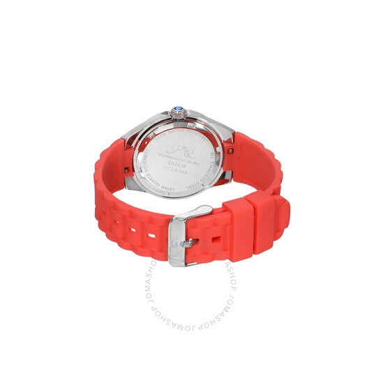 علبة من الفولاذ المقاوم للصدأ فضية اللون مع سوار سيليكون أحمر. إطار ثابت من الفولاذ المقاوم للصدأ فضي اللون. ميناء أحمر مع عقارب فضية اللون وعلامات ساعات. نوع الميناء: تناظري. عرض التاريخ عند موضع الساعة السادسة. حركة كوارتز ميوتا كاليبر GM10. زجاج معدني مقاوم للخدش. غطاء خلفي صلب. شكل دائري، مقاس العلبة: 37 مم. مشبك بإبزيم. مقاومة للماء حتى عمق 30 مترًا / 100 قدم. الوظائف: التاريخ، الساعة، الدقائق، الثانية. معلومات إضافية: تأتي مع سوارين سيليكون قابلين للتبديل، أحمر وأبيض. سلسلة جوليا. تصميم عصري. علامة الساعة: Japan Movt. ساعة بورسامو بلو جوليا كوارتز نسائية بمينا أحمر، 1122AGUR.