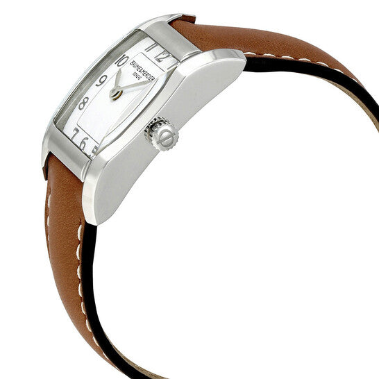 علبة من الفولاذ المقاوم للصدأ مع سوار جلدي بني. إطار ثابت من الفولاذ المقاوم للصدأ. ميناء أبيض بعقارب فضية اللون وعلامات ساعات بأرقام عربية. نوع الميناء: تناظري. عرض التاريخ عند موضع الساعة 3. آلية حركة كوارتز. زجاج ياقوت مقاوم للخدش. تاج قابل للسحب/الدفع. غطاء خلفي صلب. أبعاد العلبة: 34.5 مم × 22 مم. سُمك العلبة: 9 مم. شكل العلبة مستطيل. مشبك تانغ. مقاومة للماء حتى عمق 50 مترًا / 165 قدمًا. الوظائف: التاريخ، الساعة، الدقائق. تصميم ساعة فاخر. علامة الساعة: صناعة سويسرية. ساعة بوم إيه ميرسييه هامبتون النسائية بمينا بيضاء، رقم 10186.
