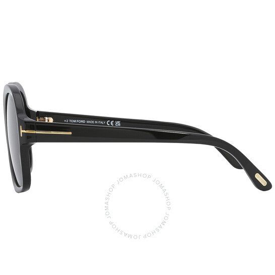 نظارات شمسية من توم فورد. سلسلة هانلي. رقم السلسلة: FT1034. رمز اللون: 01B. الشكل: مربع. عرض العدسة: 57 مم. جسر العدسة: 21 مم. طول الذراع: 140 مم. حماية 100% من الأشعة فوق البنفسجية. غير مستقطب. مادة الإطار: أسيتات. لون الإطار: أسود لامع. نوع العدسات: دخاني متدرج. نمط الحافة: حافة كاملة. رمز UPC/EAN: 889214404077. نظارات شمسية توم فورد هانلي دخاني متدرج مربعة للسيدات، FT1034 01B 57.