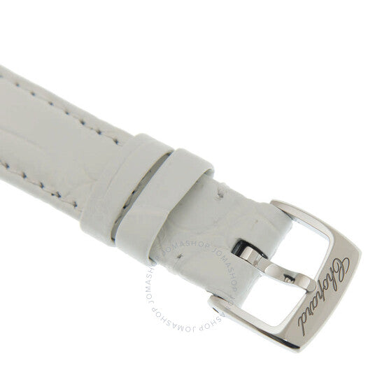 علبة من الذهب الوردي عيار ١٨ قيراطًا مع سوار من الجلد الأبيض. إطار ثابت من الذهب الوردي عيار ١٨ قيراطًا. ميناء أبيض بعقارب ذهبية على شكل سيف، وأرقام رومانية وعلامات ساعات. علامات دقائق حول الحافة الخارجية. نوع الميناء: تناظري. حركة كوارتز. زجاج ياقوت مقاوم للخدش. تاج قابل للسحب/الدفع. غطاء خلفي صلب. شكل دائري. حجم العلبة: ٣٠ مم. مشبك دبوسي. مقاومة للماء حتى عمق ٣٠ مترًا / ١٠٠ قدم. الوظائف: الساعات، الدقائق، الثواني. معلومات إضافية: العلبة الأصلية، بطاقة ضمان دولية، دليل الاستخدام (ملحقات كاملة). طراز ساعة فاخرة. ملصق الساعة: صناعة سويسرية. ساعة شوبارد هابي هارت كوارتز نسائية بمينا بيضاء، رقمها ٢٧٨٥٩٠-٦٠٠٥.