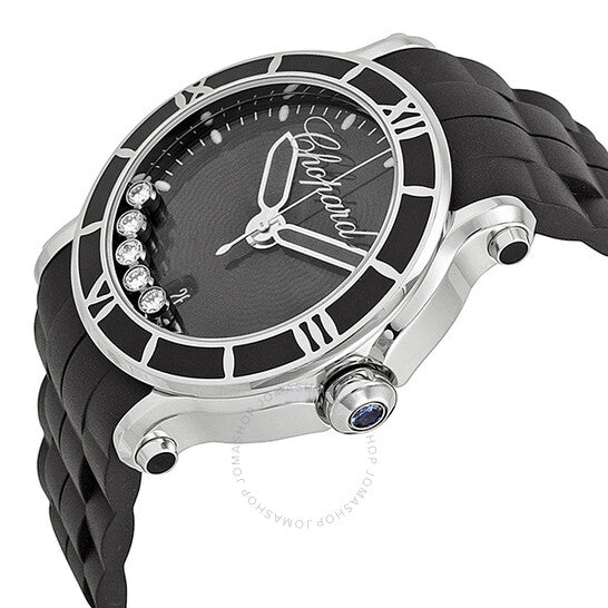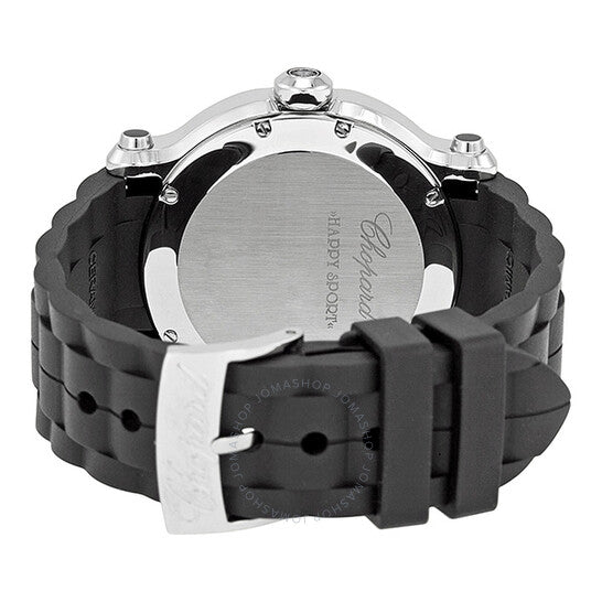 علبة من الفولاذ المقاوم للصدأ مع سوار مطاطي أسود. إطار ثابت من الفولاذ المقاوم للصدأ مع حلقة علوية من السيراميك الأسود. ميناء أسود مزخرف بخمس ماسات عائمة، وعقارب فضية اللون وعلامات ساعات. علامات دقائق حول الحافة الخارجية. نوع الميناء: تناظري. عرض التاريخ عند موضع الساعة السادسة. حركة كوارتز. زجاج ياقوت مقاوم للخدش. تاج سحب/دفع من الفولاذ المقاوم للصدأ. غطاء خلفي صلب. شكل دائري، مقاس العلبة: ٤٢ مم، سمكها: ١٢.٥٠ مم. عرض السوار: ٢٢ مم. مشبك تانغ. مقاومة للماء حتى عمق ٣٠ مترًا / ١٠٠ قدم. الوظائف: الساعات، الدقائق، الثواني، التقويم. تصميم ساعة فاخرة. علامة الساعة: صناعة سويسرية. إصدارات المنتج: ٢٨٨٥٢٥ ٣٠٠٥، ٢٨٨٥٢٥.٣٠٠٥، ٢٨٨٥٢٥٣٠٠٥. ساعة شوبارد هابي سبورت النسائية ٢٨٨٥٢٥-٣٠٠٥.
