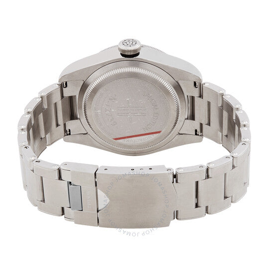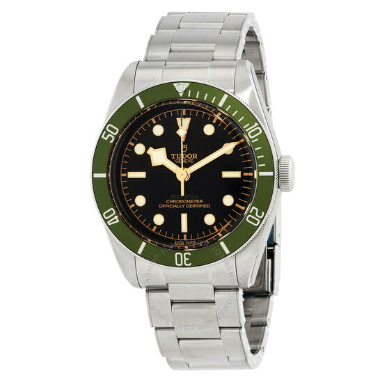 علبة وسوار من الفولاذ المقاوم للصدأ فضي اللون. إطار من الفولاذ المقاوم للصدأ أخضر اللون. ميناء أسود مع عقارب وعلامات ساعات ذهبية اللون. علامات دقائق حول الحافة الخارجية. نوع الميناء: تناظري. عقارب وعلامات مضيئة. حركة أوتوماتيكية. زجاج ياقوت مقاوم للخدش. غطاء خلفي صلب. شكل العلبة دائري، مقاسها: ٤١ مم. مشبك قابل للطي مع مفتاح أمان. مقاومة للماء حتى عمق ٢٠٠ متر / ٦٦٠ قدمًا. الوظائف: الساعات، الدقائق، الثواني. معلومات إضافية: العلبة الأصلية، دليل الاستخدام (ملحقات كاملة). سلسلة هارودز. تصميم ساعة فاخرة. علامة الساعة: صناعة سويسرية. ساعة تيودور هارودز أوتوماتيكية للرجال بمينا أسود ٧٩٢٣٠G.