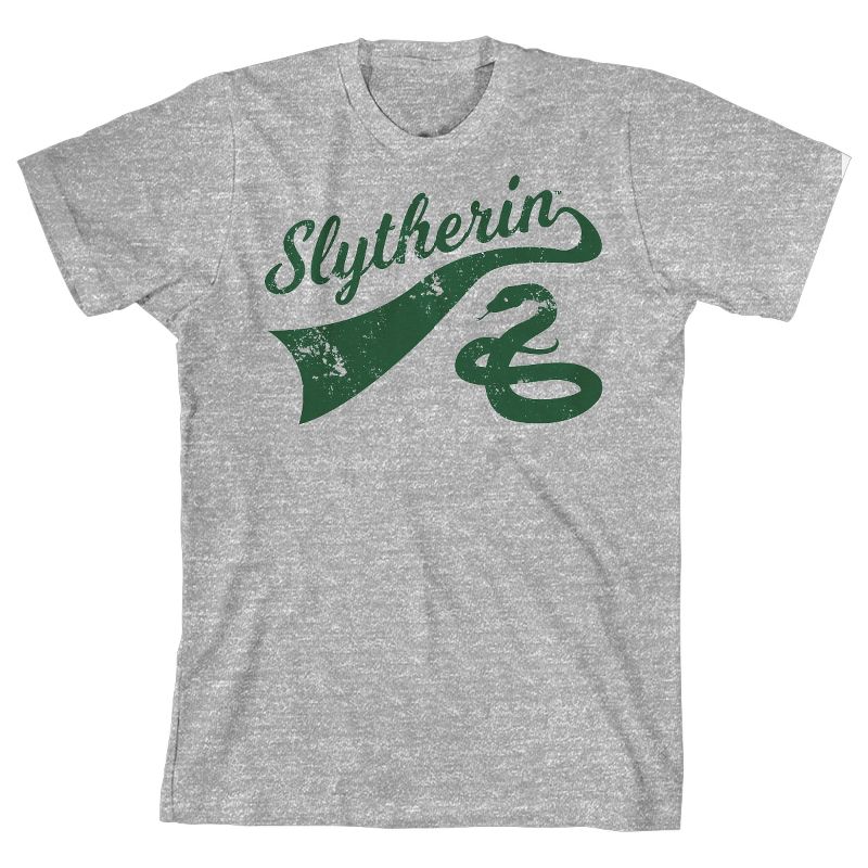 - تيشيرت برسومات: ثعبان أخضر يجلس تحت حروف خضراء تُشكل كلمة "سليذرين" على هذا التيشيرت. سيحب عشاق مدرسة هوجورتس الماهرة إظهار فخرهم بالمدرسة مع هذا التيشيرت المُستوحى من هاري بوتر.
