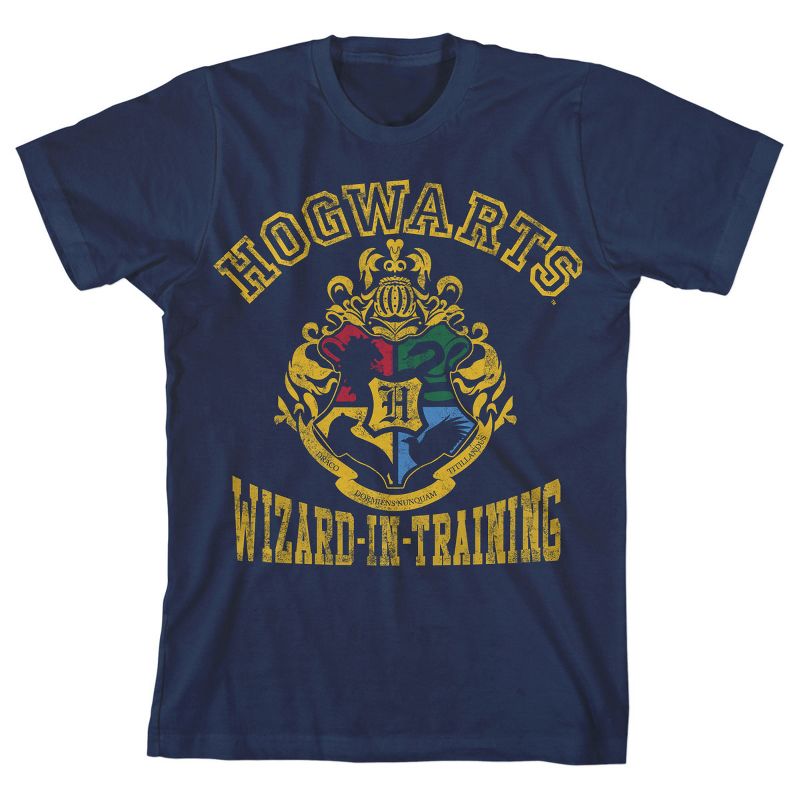- تيشيرت برسومات جرافيكية: يتميز هذا التيشيرت الصبياني بشعار مدرسة هوجورتس، مع منازل جريفندور، وسليذرين، وهافلباف، ورافنكلو، ممثلة ومتصلة بحرف H ذهبي في المنتصف. مكتوب عليه "هوجورتس. ساحر متدرب".