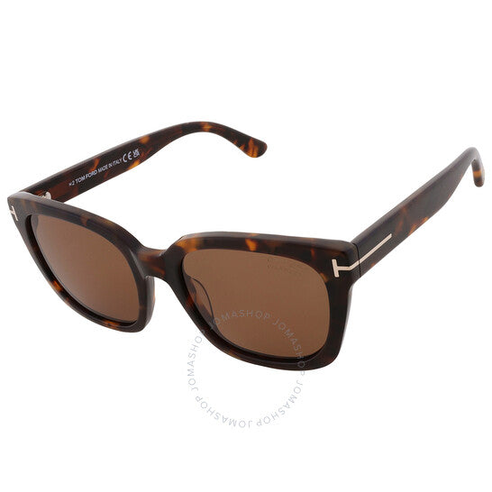 نظارات شمسية من توم فورد. سلسلة هايلاي. رقم السلسلة: FT1216. رمز اللون: 52H. الشكل: مربع. عرض العدسة: 53 مم. جسر العدسة: 19 مم. طول الذراع: 140 مم. حماية 100% من الأشعة فوق البنفسجية. مستقطبة. مادة الإطار: بلاستيك. لون الإطار: هافانا داكن. نوع العدسات: بني مستقطب. نمط الحافة: حافة كاملة. رمز UPC/EAN: 889214558725. نظارات شمسية توم فورد هايلاي نسائية مربعة مستقطبة بنية اللون، FT1216 52H 53.