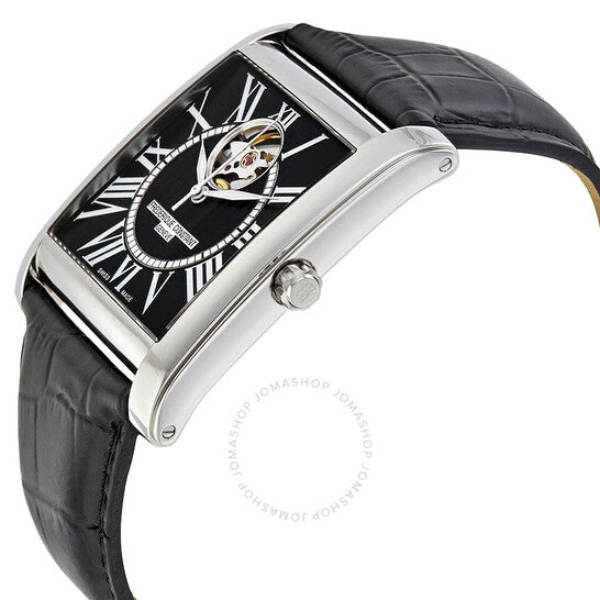 علبة من الفولاذ المقاوم للصدأ مع سوار جلدي أسود. إطار ثابت من الفولاذ المقاوم للصدأ. ميناء أسود بنافذة منحنية مع عقارب فضية اللون وعلامات ساعات رومانية. علامات دقائق حول حلقة داخلية. نوع الميناء: تناظري. حركة أوتوماتيكية من عيار فريدريك كونستانت FC-310. زجاج ياقوتي مقاوم للخدش. غطاء خلفي شفاف. حجم العلبة: 46 مم. شكل العلبة مربع. مقاومة للماء حتى عمق 30 مترًا / 100 قدم. الوظائف: الساعات، الدقائق، الثواني. طراز ساعة رسمية. علامة الساعة: صناعة سويسرية. ساعة فريدريك كونستانت هارت بيت أوتوماتيكية للرجال FC-310BS5C26.