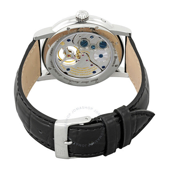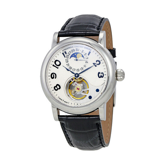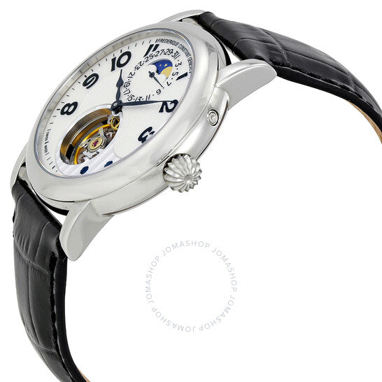 علبة فضية اللون من الفولاذ المقاوم للصدأ مع حزام جلدي أسود. إطار ثابت من الفولاذ المقاوم للصدأ فضي اللون. ميناء فضي بنافذة هيكلية مع عقارب زرقاء على شكل مجرفة وعلامات ساعات عربية. علامات دقائق حول الحافة الخارجية. نوع الميناء: تناظري. عرض التاريخ عند موضع الساعة 12. ميناءان فرعيان يعرضان: طور القمر/التاريخ وقلب مفتوح. حركة أوتوماتيكية من عيار فريدريك كونستانت FC-915، تحتوي على 17 جوهرة، مكونة من 102 قطعة، تنبض بسرعة 28800 ذبذبة في الساعة، ولديها احتياطي طاقة لمدة 42 ساعة تقريبًا. كريستال ياقوت مقاوم للخدش. تاج سحب/دفع. غطاء خلفي شفاف هيكلي. شكل العلبة دائري، حجم العلبة: 41 مم، سمك العلبة: 9.7 مم. مشبك تانغ. مقاومة للماء حتى عمق 50 مترًا / 165 قدمًا. الوظائف: التاريخ، الساعة، الدقائق، طور القمر. سلسلة Heart Beat. طراز ساعة رسمية. ملصق الساعة: صنع سويسري. ساعة فريدريك كونستانت هارت بيت للرجال بمينا فضي FC-915AS4H6.