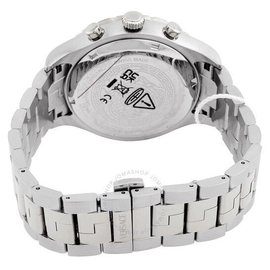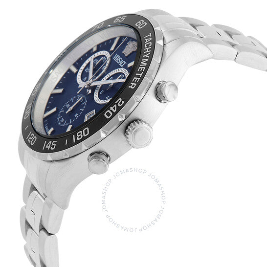 علبة وسوار من الفولاذ المقاوم للصدأ فضي اللون. إطار أسود من الفولاذ المقاوم للصدأ. ميناء أزرق مع عقارب وعلامات ساعات فضية اللون. علامات دقائق حول الحافة الخارجية. مقياس سرعة الدوران على الحافة الخارجية. نوع الميناء: تناظري. عقارب وعلامات مضيئة. عرض التاريخ عند موضع الساعة الرابعة. كرونوغراف - ثلاثة أقراص فرعية تعرض: ٦٠ ثانية، ٣٠ دقيقة، وعُشر الثانية. آلية حركة كوارتز. زجاج ياقوت مقاوم للخدش. تاج قابل للسحب/الدفع. غطاء خلفي صلب. شكل العلبة دائري، مقاسها: ٤٣ × ٥٦.٦ مم. مقاومة للماء حتى عمق ٥٠ مترًا / ١٦٥ قدمًا. الوظائف: كرونوغراف، تاريخ، ساعة، دقيقة، ثانية. سلسلة هيلينيوم. طراز ساعة رسمية. علامة الساعة: صناعة سويسرية. ساعة فيرساتشي هيلينيوم كرونوغراف كوارتز زرقاء للرجال VEPCA0324.