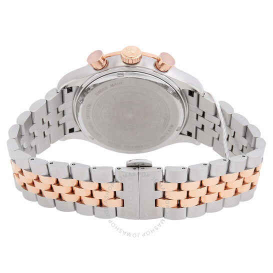 علبة من الفولاذ المقاوم للصدأ بلون ذهبي مع سوار من الفولاذ المقاوم للصدأ بلونين (فضي وذهبي). إطار من الفولاذ المقاوم للصدأ بلون ذهبي. ميناء أخضر بعقارب ومؤشرات ساعات ذهبية اللون. مقياس سرعة حول الحافة الخارجية. نوع الميناء: تناظري. عقارب ومؤشرات مضيئة. عرض التاريخ عند موضع الساعة الرابعة. كرونوغراف - ثلاثة موانئ فرعية تعرض: ٦٠ ثانية، ٣٠ دقيقة، و١/١٠ من الثانية. آلية حركة كوارتز. زجاج من الياقوت المقاوم للخدش. تاج قابل للسحب/الدفع. غطاء خلفي صلب. شكل دائري، حجم العلبة: ٤٤ مم. مشبك قابل للطي بزر ضغط. مقاومة للماء حتى عمق ٥٠ مترًا / ١٦٥ قدمًا. الوظائف: كرونوغراف، تاريخ، ساعة، دقيقة، ثانية. سلسلة هيلينيوم. طراز ساعة رسمية. علامة الساعة: صناعة سويسرية. ساعة فيرساتشي هيلينيوم كرونوغراف كوارتز للرجال بمينا خضراء VE2U00924.