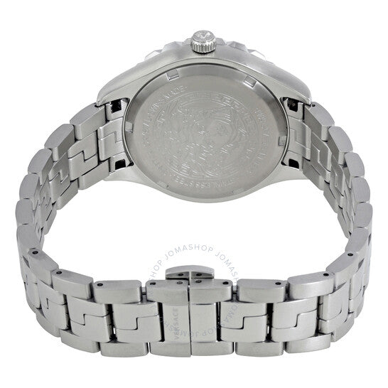 علبة من الفولاذ المقاوم للصدأ مع سوار من الفولاذ المقاوم للصدأ. إطار ثابت من الفولاذ المقاوم للصدأ منقوش بنقش يوناني. ميناء وردي مع عقارب ومؤشرات ساعات فضية مضيئة. يظهر شعار رأس ميدوسا عند موضع الساعة ١٢. مؤشرات دقائق حول الحافة الخارجية. نوع الميناء: تناظري. عقارب ومؤشرات مضيئة. عرض التاريخ عند موضع الساعة ٣. حركة كوارتز. كريستال ياقوتي مقاوم للخدش. غطاء خلفي صلب. حجم العلبة: ٣٥ مم. سمكها: ١٠ مم. شكلها دائري. عرض السوار: ١٦ مم. مشبك قابل للطي بزر ضغط. مقاومة للماء حتى عمق ٥٠ مترًا / ١٦٥ قدمًا. الوظائف: التاريخ، الساعة، الدقيقة، الثانية. طراز ساعة رسمية. علامة الساعة: صناعة سويسرية. ساعة فيرساتشي هيلينيوم النسائية بمينا وردي وستانلس ستيل V12010015.