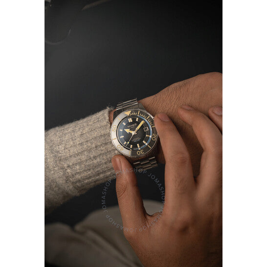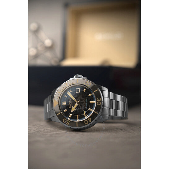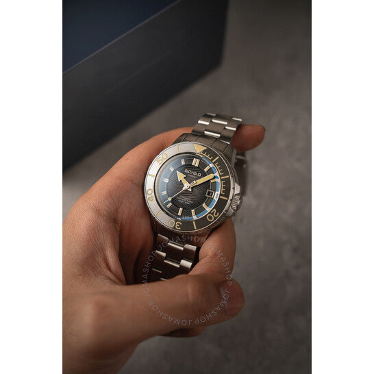 علبة وسوار من الفولاذ المقاوم للصدأ فضي اللون. إطار دوار أحادي الاتجاه من الفولاذ المقاوم للصدأ أسود اللون. ميناء رمادي مع عقارب فضية اللون وعلامات ساعات. نوع الميناء: تناظري. عقارب وعلامات مضيئة. عرض التاريخ عند موضع الساعة 3. حركة أوتوماتيكية AS - 5203. تاج لولبي. غطاء خلفي صلب. شكل العلبة دائري، مقاسها: 43 مم، سمكها: 15 مم. عرض السوار: 20 مم، طوله: 8 بوصات. مشبك قابل للطي بزر ضغط. مقاومة للماء حتى عمق 200 متر / 660 قدمًا. الوظائف: التاريخ، الساعة، الدقائق، الثواني. سلسلة هيرمان. تصميم كاجوال. علامة الساعة: صناعة سويسرية. ساعة شيلد هيرمان أوتوماتيكية للرجال بمينا رمادي SC-1016-66.