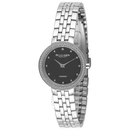 علبة من الفولاذ المقاوم للصدأ فضية اللون مع سوار فضي اللون. إطار ثابت من الفولاذ المقاوم للصدأ فضي اللون. ميناء أسود بعقارب فضية اللون وعلامات ساعات. نوع الميناء: تناظري. حركة كوارتز. زجاج معدني مقاوم للخدش. تاج ضغط/سحب. غطاء خلفي صلب. شكل دائري، مقاس العلبة: ٢٦ مم، سمكها: ٦.٧٥ مم. عرض السوار: ١١.٦ مم، طوله: ٧.٥ بوصة. مشبك قابل للطي. مقاومة للماء حتى عمق ٥٠ مترًا / ١٦٥ قدمًا. الوظائف: الساعات، الدقائق. تصميم كاجوال. ساعة روديجر هيس النسائية بمينا أسود R3300-04-007.