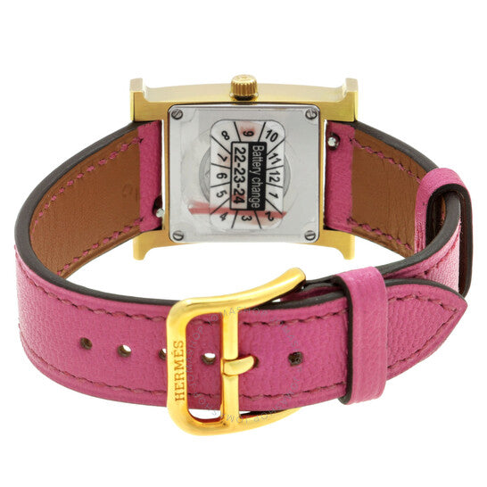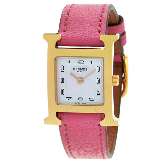علبة من الفولاذ المقاوم للصدأ بلون ذهبي مع سوار جلدي وردي. إطار ثابت من الفولاذ المقاوم للصدأ بلون ذهبي. ميناء أبيض بعقارب ذهبية اللون وعلامات ساعات بأرقام عربية. نوع الميناء: تناظري. حركة كوارتز. زجاج من الياقوت المقاوم للخدش. تاج قابل للسحب/الدفع. غطاء خلفي صلب. شكل العلبة مربع، مقاسها: ٢١ مم. مشبك بإبزيم. مقاومة للماء حتى عمق ٣٠ مترًا / ١٠٠ قدم. الوظائف: الساعات، الدقائق. سلسلة Heure H. طراز الساعة الرياضية. علامة الساعة: صناعة سويسرية. ساعة هيرمس Heure H كوارتز نسائية بمينا بيضاء، 041931WW00.