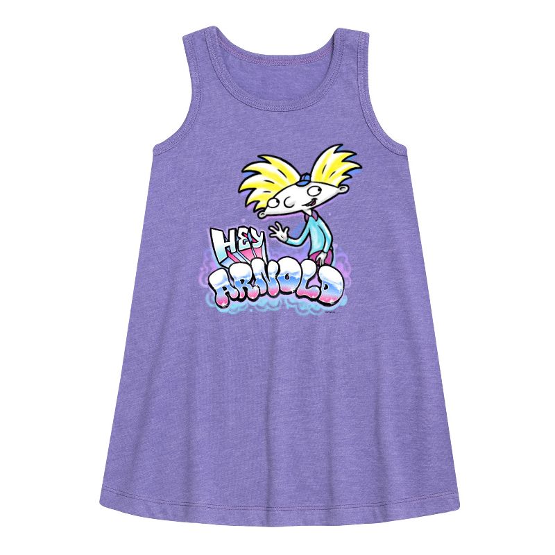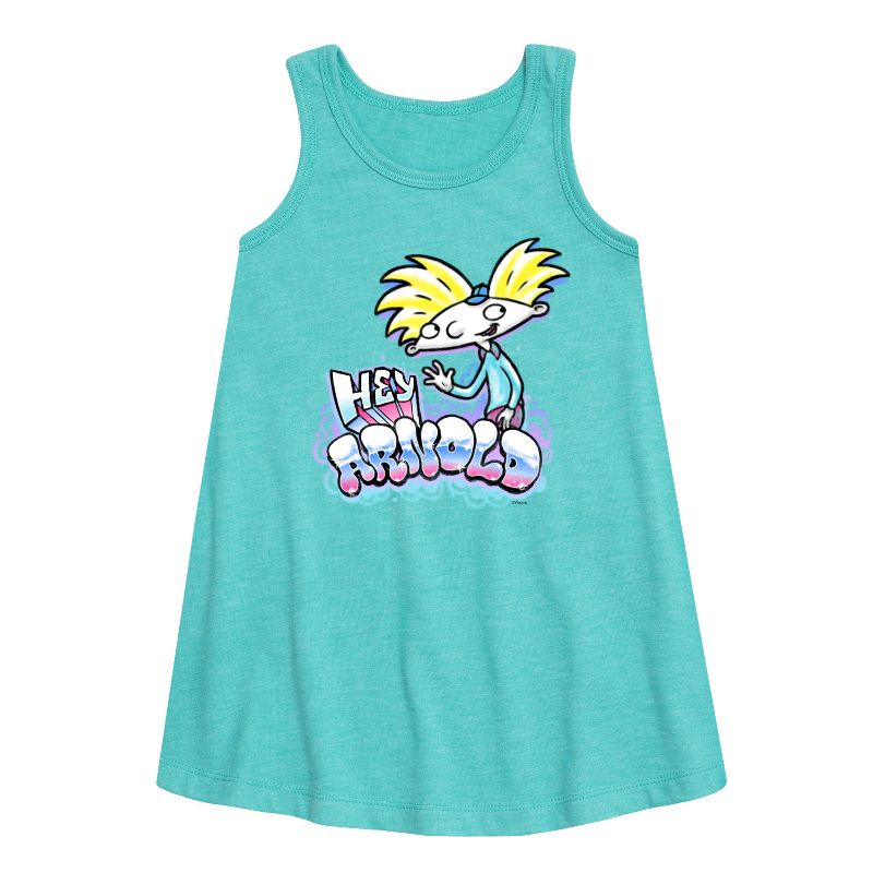 هيا أرنولد! - فستان إيربراش أرنولد بقصة حرف A للفتيات الصغيرات والشابات - تألقي بأناقتكِ مع أزياء هيا أرنولد! الجرافيكية. تتميز هذه التصاميم بأرنولد وهيلجا ورفاقهما، وتعكس روح وروح هذا المسلسل الكرتوني المحبوب الذي يتناول قصة النشأة في المدينة الكبيرة.