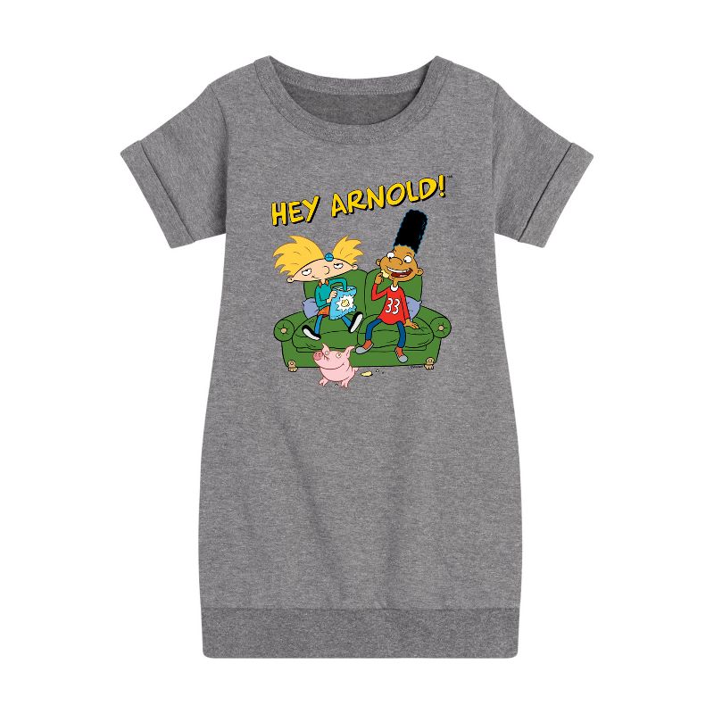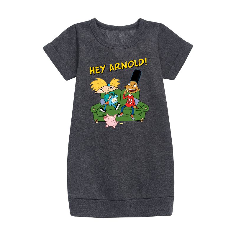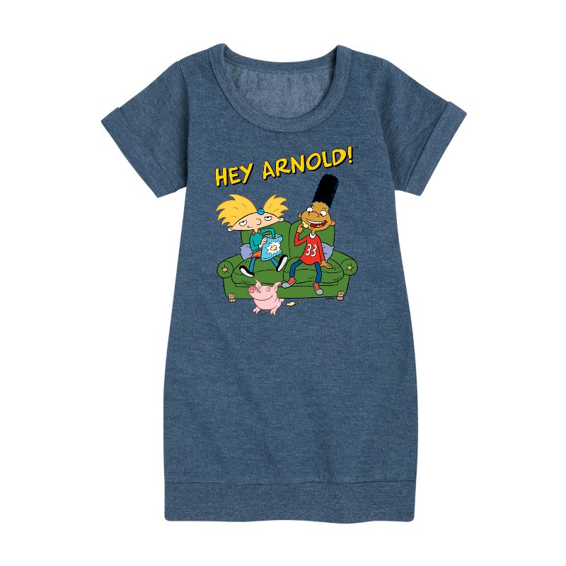 هيا أرنولد! - أرنولد، جيرالد، وأبنر - فستان صوف للفتيات الصغيرات والشابات - تألقي بأناقتكِ مع ملابس هيا أرنولد! الجرافيكية. تتميز هذه التصاميم بأرنولد، وهيلجا، ورفاقهما، وتعكس روح وروح هذا المسلسل الكرتوني المحبوب الذي يتناول قصة النشأة في المدينة الكبيرة.