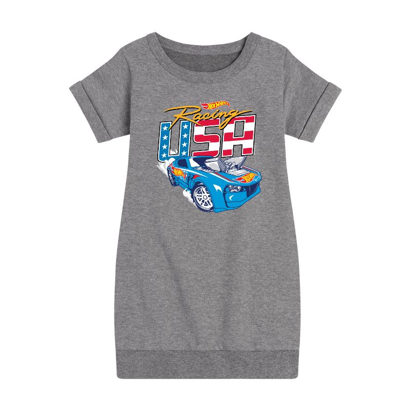 هوت ويلز - ريسينغ يو إس إيه - فستان صوف للفتيات الصغيرات والشابات - انطلقي بجرأة مع ملابس هوت ويلز الجرافيكية، بتصاميمها النابضة بالحياة التي تُبرز سيارات أسطورية مثل توين ميل وبون شيكر وغيرها من السيارات المفضلة لدى المعجبين. كل قطعة تُجسّد الإثارة المُفعمة بالحيوية في المسارات الملحمية، والحركات البهلوانية المذهلة، وسباقات السيارات المتواصلة. مثالية لجميع الأعمار، ممن نشأوا على إطلاق السيارات من المسارات البرتقالية وجمع سيارات السرعة المصغرة، تُضفي هذه المجموعة على إطلالتك اليومية لمسة من الإثارة والحيوية والحنين إلى الماضي، وأناقة لا تُضاهى.