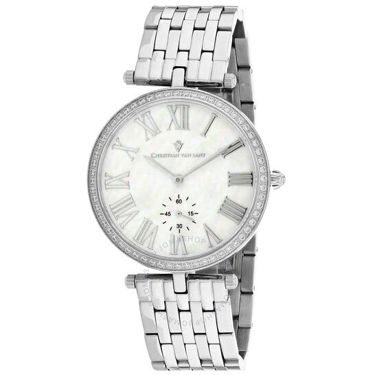 علبة وسوار من الفولاذ المقاوم للصدأ فضي اللون. إطار ثابت من الفولاذ المقاوم للصدأ فضي اللون. ميناء من عرق اللؤلؤ مع عقارب فضية اللون وعلامات ساعات بأرقام رومانية. نوع الميناء: تناظري. حركة كوارتز. زجاج معدني مقاوم للخدش. شكل العلبة دائري، مقاسها: 36 مم، سمكها: 8 مم. عرض السوار: 18 مم، طوله: 7.5 بوصة. مشبك قابل للطي مع قفل أمان. مقاومة للماء حتى عمق 3 أمتار / 10 أقدام. الوظائف: الساعات، الدقائق، الثواني. سلسلة هاش. ساعة أنيقة. ساعة كريستيان فان سانت هاش كوارتز نسائية CV0290.