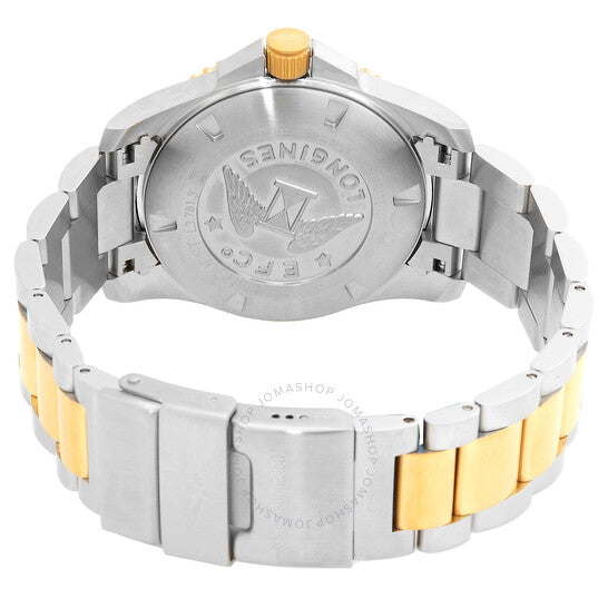 علبة من الفولاذ المقاوم للصدأ مع سوار من الفولاذ المقاوم للصدأ بوصلات مركزية من الذهب الأصفر عيار 18 قيراطًا. إطار دوار أحادي الاتجاه من الذهب الأصفر عيار 18 قيراطًا مع حلقة سيراميك خضراء مرصعة. ميناء أخضر مع عقارب مضيئة بلون الذهب الأصفر وعلامات ساعات منقطة. تظهر الأرقام العربية عند الساعة 6 و9 و12. علامات الدقائق حول الحافة الخارجية. نوع الميناء: تناظري. عقارب وعلامات مضيئة. عرض التاريخ عند الساعة 3. حركة لونجين الأوتوماتيكية عيار L888، مبنية على ETA A31.L11، تحتوي على 21 جوهرة، تنبض بمعدل 25200 ذبذبة في الساعة، ولديها احتياطي طاقة لمدة 64 ساعة تقريبًا. زجاج من الياقوت المقاوم للخدش. تاج لولبي. غطاء خلفي صلب. شكل دائري. حجم العلبة: 41 مم. سمك العلبة: 11.9 مم. عرض السوار: 21 مم. مشبك قابل للطي. مقاومة للماء حتى عمق ٣٠٠ متر / ١٠٠٠ قدم. الوظائف: التاريخ، الساعة، الدقيقة، الثانية. معلومات إضافية: العلبة الأصلية، دليل الاستخدام (ملحقات كاملة). سلسلة هيدرو كونكويست. تصميم فاخر. علامة الساعة: صناعة سويسرية. ساعة لونجين هيدرو كونكويست أوتوماتيكية للرجال بمينا أخضر، موديل L3.781.3.06.7.