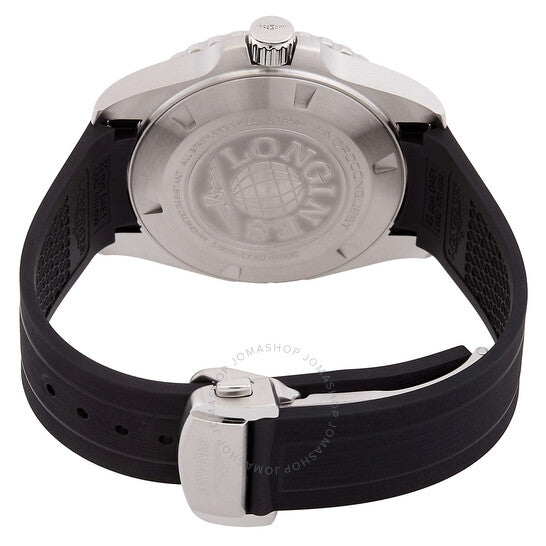 علبة فضية اللون من الفولاذ المقاوم للصدأ مع سوار مطاطي أسود. إطار دوار أحادي الاتجاه من السيراميك الأسود. ميناء أسود بعقارب فضية اللون وعلامات ساعات على شكل عصا. علامات دقائق حول الحافة الخارجية. نوع الميناء: تناظري. عقارب وعلامات مضيئة. عرض التاريخ عند موضع الساعة 3. حركة أوتوماتيكية من لونجين كاليبر L844 مع احتياطي طاقة لمدة 72 ساعة. زجاج من الياقوت المقاوم للخدش. تاج لولبي. غطاء خلفي صلب. شكل دائري، مقاس العلبة: 43 مم، سمكها: 12.90 مم. عرض السوار: 22 مم. مشبك قابل للطي. مقاومة للماء حتى عمق 300 متر / 1000 قدم. الوظائف: التاريخ، الساعة، الدقائق، الثواني. سلسلة هيدروكونكويست. طراز الساعة الرياضية. علامة الساعة: صناعة سويسرية. تنوعات المنتج: L3.890.4.56.9. ساعة لونجين هيدروكونكويست أوتوماتيكية للرجال بمينا أسود، L38904569.