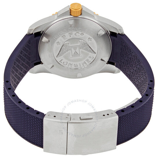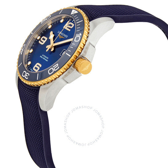 علبة من الفولاذ المقاوم للصدأ مع سوار مطاطي أزرق. إطار دوار أحادي الاتجاه من الذهب عيار 18 قيراطًا مع حلقة سيراميك زرقاء مرصعة. ميناء أزرق مع عقارب مضيئة ذهبية اللون وعلامات ساعات منقطة. تظهر أرقام عربية عند الساعة 6 و9 و12. علامات دقائق حول الحافة الخارجية. نوع الميناء: تناظري. عقارب وعلامات مضيئة. عرض التاريخ عند الساعة 3. حركة لونجين الأوتوماتيكية عيار L888، مبنية على ETA A31.L11، تحتوي على 21 جوهرة، تنبض بتردد 25200 ذبذبة في الساعة، ولديها احتياطي طاقة لمدة 64 ساعة تقريبًا. زجاج من الياقوت المقاوم للخدش. تاج لولبي. غطاء خلفي صلب. شكل دائري. حجم العلبة: 41 مم. سمك العلبة: 11.9 مم. عرض السوار: 20 مم. مشبك قابل للطي بزر ضغط. مقاومة للماء حتى عمق 300 متر / 1000 قدم. الوظائف: التاريخ، الساعة، الدقيقة، الثانية. معلومات إضافية: العلبة الأصلية، دليل الاستخدام (ملحقات كاملة). سلسلة هيدرو كونكويست. تصميم ساعة فاخر. علامة الساعة: صناعة سويسرية. ساعة لونجين هيدرو كونكويست أوتوماتيكية للرجال بمينا أزرق L3.781.3.96.9.