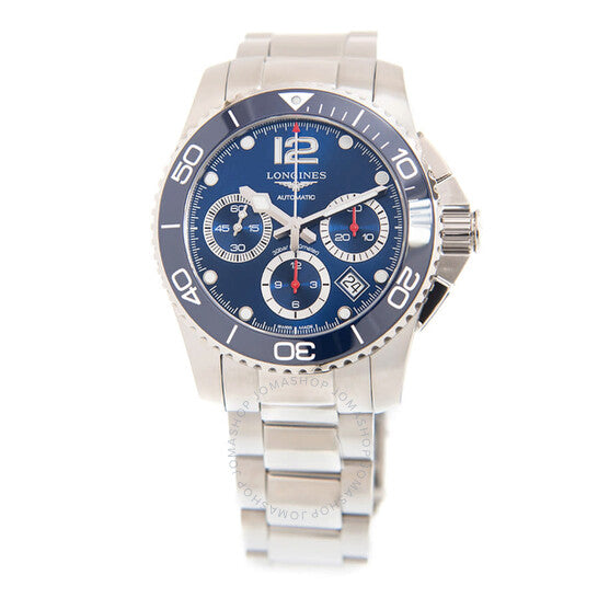 علبة وسوار من الفولاذ المقاوم للصدأ فضي اللون. إطار دوار أحادي الاتجاه من السيراميك الأزرق. ميناء أزرق مع عقارب فضية اللون ومؤشرات ساعات بأرقام عربية. مؤشرات دقائق حول الحافة الخارجية. نوع الميناء: تناظري. عقارب ومؤشرات مضيئة. عرض التاريخ بين الساعة الرابعة والخامسة. كرونوغراف - ثلاثة موانئ فرعية تعرض: 60 ثانية، 30 دقيقة، و12 ساعة. حركة لونجين كاليبر L688 أوتوماتيكية، مبنية على ETA A08.L01، تحتوي على 27 جوهرة، تنبض بمعدل 28800 ذبذبة في الساعة، ولديها احتياطي طاقة لمدة 54 ساعة تقريبًا. زجاج ياقوت مقاوم للخدش. تاج لولبي. هيكل دائري، مقاسه: 41 مم، سمكه: 15.6 مم. عرض السوار: 21 مم. مشبك قابل للطي مع مفتاح أمان. مقاومة للماء حتى عمق 300 متر / 1000 قدم. الوظائف: كرونوغراف، عجلة عمودية، تاريخ، ساعات، دقائق، ثوانٍ صغيرة. سلسلة هيدروكونكويست. طراز ساعة رياضية. علامة الساعة: صناعة سويسرية. ساعة لونجين هيدروكونكويست كرونوغراف أوتوماتيكية للرجال بمينا أزرق L3.783.4.96.6.