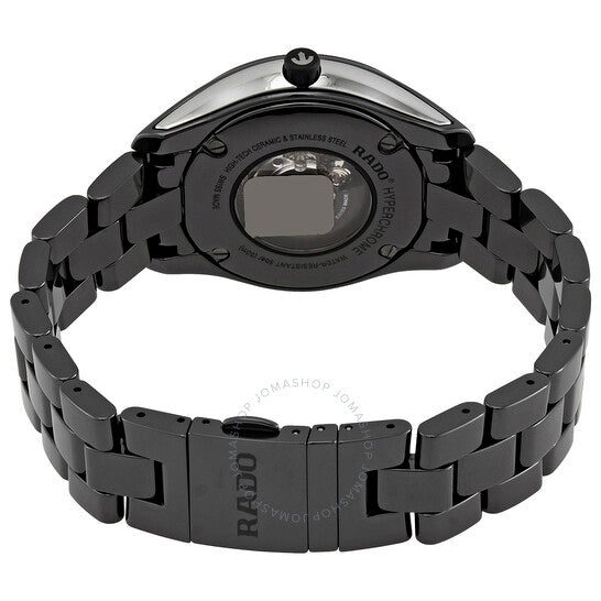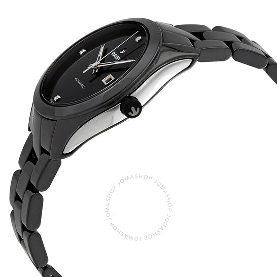 علبة وسوار من السيراميك الأسود (عالي التقنية). إطار ثابت من السيراميك الأسود (عالي التقنية). ميناء أسود بعقارب فضية اللون. مرصعة بالألماس عند مواضع الساعات 3 و6 و9 و12. نوع الميناء: تناظري. عقارب مضيئة. حركة أوتوماتيكية من رادو، عيار 580 (ETA 2681)، مبنية على ETA 2681، تحتوي على 25 جوهرة، تنبض بتردد 28800 ذبذبة في الساعة، وتحتفظ باحتياطي طاقة يدوم حوالي 38 ساعة. زجاج ياقوت مقاوم للخدش. تاج قابل للسحب/الدفع. غطاء خلفي شفاف. شكل دائري. حجم العلبة: 36 مم. سمكها: 10 مم. عرض السوار: 16 مم. مشبك قابل للطي بزر ضغط. مقاومة للماء حتى عمق 50 مترًا / 165 قدمًا. الوظائف: التاريخ، الساعة، الدقيقة، الثانية. معلومات إضافية: رقم المرجع: 580.0260.3.070. سلسلة هايبركروم. طراز ساعة رسمية. ساعة رادو هايبركروم أوتوماتيكية مرصعة بالألماس والسيراميك الأسود للنساء، طراز R32260702.