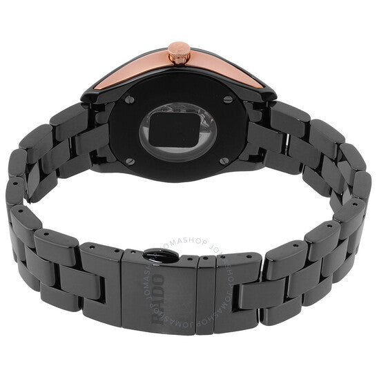 علبة وسوار من سيراميك PVD أسود. إطار ثابت من سيراميك PVD أسود. ميناء أسود بعقارب بلون الذهب الوردي وعلامات ساعات من الألماس. نوع الميناء: تناظري. عرض التاريخ عند موضع الساعة 3. حركة أوتوماتيكية باحتياطي طاقة لمدة 44 ساعة. زجاج من الياقوت المقاوم للخدش. تاج قابل للسحب والدفع. غطاء خلفي شفاف. شكل العلبة دائري، مقاسها: 36 مم، سمكها: 10.4 مم. مشبك قابل للطي. مقاومة للماء حتى عمق 50 مترًا / 165 قدمًا. الوظائف: التاريخ، الساعة، الدقيقة، الثانية. سلسلة هايبركروم. تصميم كاجوال. علامة الساعة: صناعة سويسرية. رقم المنتج: 01.580.6044.3.090. ساعة رادو هايبركروم أوتوماتيكية نسائية بمينا أسود مرصعة بالألماس، R32044902.