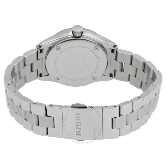 علبة من الفولاذ المقاوم للصدأ مع سوار من الفولاذ المقاوم للصدأ. إطار ثابت من السيراميك الفضي. ميناء أسود بعقارب ومؤشرات ساعات فضية مضيئة. مؤشرات دقائق حول الحافة الخارجية. نوع الميناء: تناظري. عقارب ومؤشرات مضيئة. عرض التاريخ عند موضع الساعة 3. آلية حركة كوارتز. زجاج ياقوت مقاوم للخدش. تاج قابل للسحب/الدفع. غطاء خلفي صلب. شكل دائري. أبعاد العلبة: 31 مم × 37.5 مم. سمك العلبة: 9 مم. عرض السوار: 15 مم. طول السوار: 6.6 بوصة. مشبك قابل للطي بزر ضغط. مقاومة للماء حتى عمق 50 مترًا / 165 قدمًا. الوظائف: التاريخ، الساعة، الدقائق، الثواني. طراز ساعة رسمية. علامة الساعة: صناعة سويسرية. ساعة رادو هايبر كروم نسائية بمينا سوداء، R32110153.