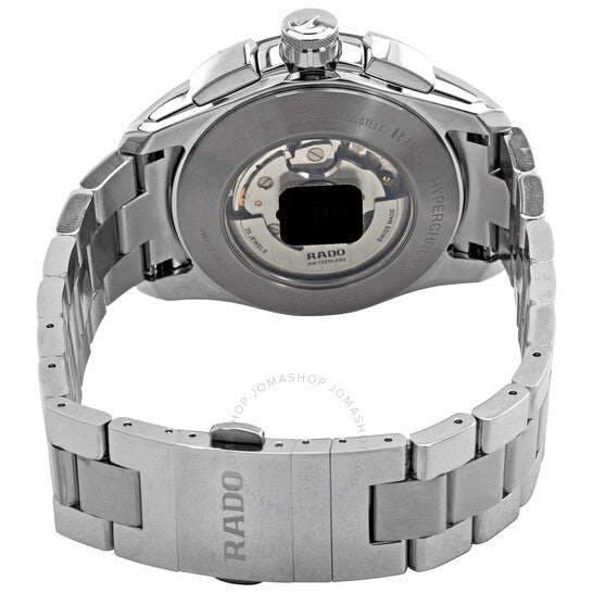 علبة من الفولاذ المقاوم للصدأ مع سوار من الفولاذ المقاوم للصدأ. إطار ثابت من الفولاذ المقاوم للصدأ مع حلقة سيراميك زرقاء تُظهر علامات التاكيميتر. ميناء أزرق بعقارب مضيئة بلون الذهب الوردي وعلامات ساعات بأرقام عربية. علامات دقائق حول الحافة الخارجية. نوع الميناء: تناظري. عقارب مضيئة. عرض التاريخ بين موضعي الساعة الرابعة والخامسة. كرونوغراف - ثلاثة أقراص فرعية تعرض: ٦٠ ثانية، ٣٠ دقيقة، و١٢ ساعة. حركة أوتوماتيكية من عيار ETA A05H2 مع احتياطي طاقة لمدة ٥٤ ساعة. زجاج من الياقوت المقاوم للخدش. تاج قابل للسحب/الدفع. غطاء خلفي شفاف. شكل دائري. حجم العلبة: ٤٤ مم. عرض السوار: ٢٠ مم. مشبك قابل للطي مع مفتاح أمان. مقاومة للماء حتى عمق ١٠٠ متر / ٣٣٠ قدمًا. الوظائف: كرونوغراف، تاكيميتر، تاريخ، ساعة، دقيقة، ثانية. سلسلة هايبركروم. طراز ساعة رسمية. علامة الساعة: صناعة سويسرية. ساعة رادو هايبركروم كرونوغراف أوتوماتيكية بمينا أزرق للرجال R32042203.