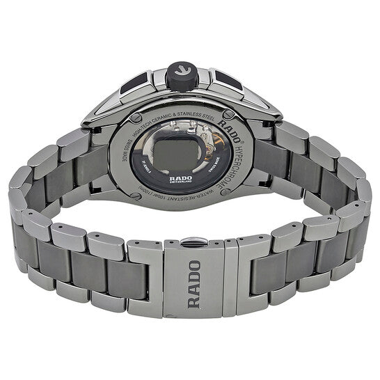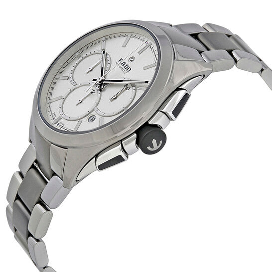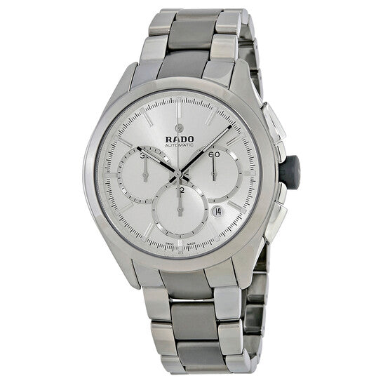 علبة وسوار من السيراميك البلاتيني (عالي التقنية). إطار ثابت من السيراميك البلاتيني (عالي التقنية). ميناء فضي مع عقارب ومؤشرات ساعات فضية مضيئة. مؤشرات دقائق حول الحافة الخارجية. نوع الميناء: تناظري. عقارب ومؤشرات مضيئة. عرض التاريخ بين موضعي الساعة الرابعة والخامسة. كرونوغراف - ثلاثة موانئ فرعية تعرض: ٦٠ ثانية، ٣٠ دقيقة، و١٢ ساعة. حركة أوتوماتيكية. زجاج ياقوت مقاوم للخدش. تاج قابل للسحب/الدفع. غطاء خلفي شفاف. شكل دائري. حجم العلبة: ٤٥ مم. سمكها: ١٣ مم. عرض السوار: ٢٠ مم. مشبك قابل للطي بزر ضغط. مقاومة للماء حتى عمق ١٠٠ متر / ٣٣٠ قدمًا. الوظائف: كرونوغراف، تاريخ، ساعة، دقيقة، ثانية. سلسلة هايبركروم. طراز ساعة رسمية. علامة الساعة: صناعة سويسرية. ساعة رادو هايبركروم كرونوغراف أوتوماتيكية بمينا فضي للرجال، R32276102.
