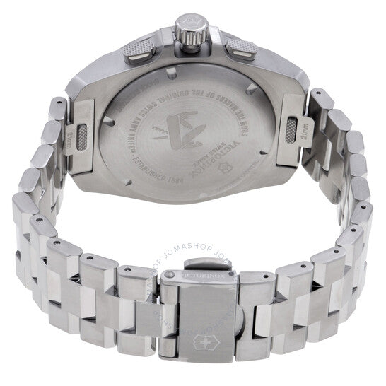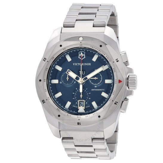علبة وسوار من الفولاذ المقاوم للصدأ فضي اللون. إطار ثابت من الفولاذ المقاوم للصدأ فضي اللون. ميناء أزرق بعقارب مضيئة ومؤشرات ساعات. مقياس دقائق حول الحافة الداخلية. نوع الميناء: تناظري. عقارب ومؤشرات مضيئة. عرض التاريخ عند موضع الساعة السادسة. كرونوغراف - ثلاثة موانئ فرعية تعرض: ٦٠ ثانية، ٣٠ دقيقة، وعُشر الثانية. حركة كوارتز روندا كاليبر ٥٠٤٠.E. كريستال ياقوت مقاوم للخدش. تاج لولبي. غطاء خلفي صلب. شكل العلبة دائري، مقاسها: ٤٣ مم، سمكها: ١٣ مم. عرض السوار: ٢١ مم. مشبك قابل للطي بزر ضغط. مقاومة للماء حتى عمق ١٠٠ متر / ٣٣٠ قدمًا. الوظائف: كرونوغراف، تاريخ، ساعة، دقيقة، ثانية. سلسلة إينوكس. طراز ساعة رسمية. علامة الساعة: صناعة سويسرية. ساعة فيكتورينوكس إينوكس كرونوغراف كوارتز زرقاء للرجال، رقم الموديل ٢٤١٩٨٥.