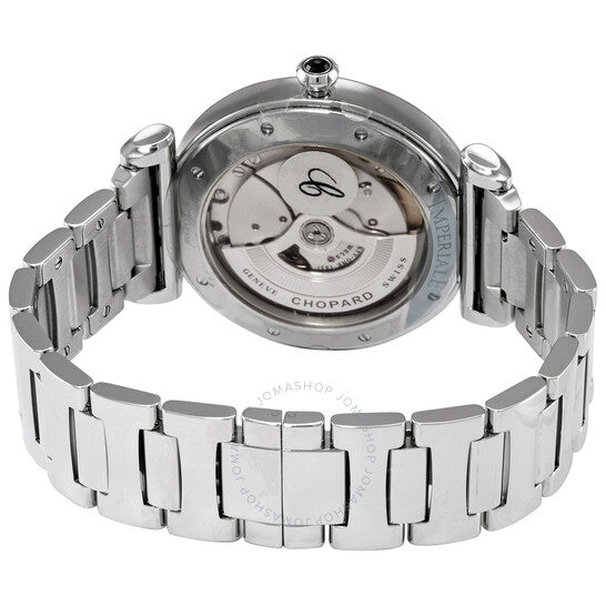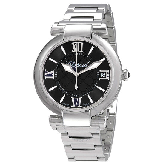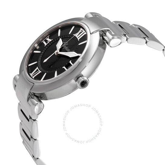 علبة من الفولاذ المقاوم للصدأ مع سوار أسود من جلد العجل. إطار ثابت من الفولاذ المقاوم للصدأ. ميناء أسود من طبقتين مع عقارب فضية مضيئة ومؤشرات ساعات. أرقام رومانية تُشير إلى الساعات 3 و6 و9 و12. علامات دقائق حول حلقة داخلية. نوع الميناء: تناظري. عقارب مضيئة. عرض التاريخ عند الساعة 3. حركة أوتوماتيكية من عيار شوبارد 01.01-C مع احتياطي طاقة لمدة 60 ساعة. زجاج ياقوت مقاوم للخدش. تاج لولبي. غطاء خلفي شفاف. حجم العلبة: 40 مم. سمكها: 10 مم. شكلها دائري. عرض السوار: 20 مم. مشبك تانغ. مقاومة للماء حتى عمق 50 مترًا / 165 قدمًا. الوظائف: التاريخ، الساعة، الدقائق، الثواني. تصميم ساعة فاخرة. علامة الساعة: صناعة سويسرية. إصدارات المنتج: CP388531 3005، CP388531.3005، CP3885313005. ساعة شوبارد إمبريال أوتوماتيكية للرجال بمينا أسود 388531-3005.