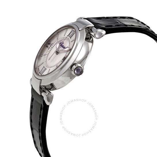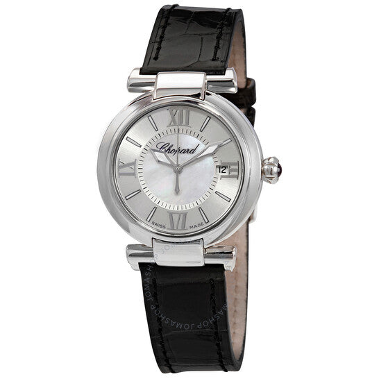 علبة من الفولاذ المقاوم للصدأ مع سوار أسود من جلد التمساح. إطار ثابت من الفولاذ المقاوم للصدأ. ميناء فضي مع عقارب ومؤشرات ساعات فضية مضيئة. مؤشرات دقائق حول حلقة داخلية. نوع الميناء: تناظري. عقارب ومؤشرات مضيئة. عرض التاريخ عند موضع الساعة 3. حركة أوتوماتيكية. زجاج ياقوت مقاوم للخدش. تاج قابل للسحب/الدفع. غطاء خلفي شفاف. شكل دائري. حجم العلبة: 29 مم. مشبك تانغ. مقاومة للماء حتى عمق 50 مترًا / 165 قدمًا. الوظائف: التاريخ، الساعة، الدقائق، الثواني. معلومات إضافية: العلبة الأصلية، دليل الاستخدام (ملحقات كاملة). سلسلة إمبيريال. تصميم ساعة فاخرة. علامة الساعة: صناعة سويسرية. ساعة شوبارد إمبيريال أوتوماتيكية نسائية بمينا فضي 388563-3001.