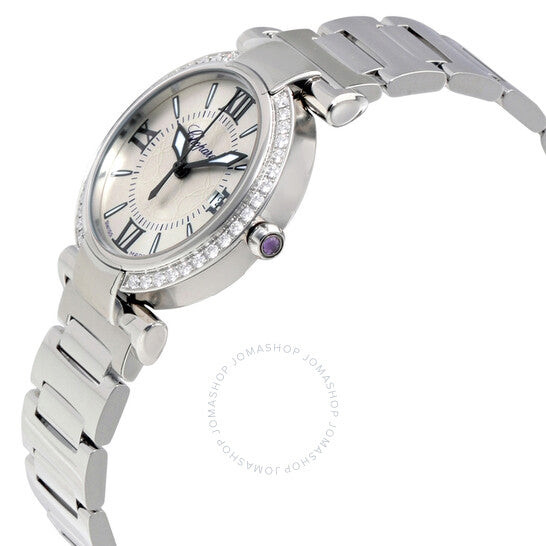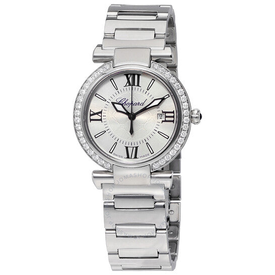 علبة من الفولاذ المقاوم للصدأ مع سوار من الفولاذ المقاوم للصدأ. إطار ثابت من الفولاذ المقاوم للصدأ مرصع بالألماس. ميناء فضي بعقارب مضيئة ومؤشرات ساعات. أرقام رومانية تُشير إلى الساعات 3 و6 و9 و12. مؤشرات دقائق حول حلقة داخلية. نوع الميناء: تناظري. عرض التاريخ عند الساعة 3. حركة كوارتز. زجاج ياقوت مقاوم للخدش. تاج قابل للسحب/الدفع. غطاء خلفي صلب. شكل دائري. حجم العلبة: 28 مم. سمكها: 8 مم. عرض السوار: 15 مم. مشبك طي مخفي. مقاومة للماء حتى عمق 50 مترًا / 165 قدمًا. الوظائف: التاريخ، الساعة، الدقائق، الثواني. سلسلة إمبيريال. تصميم ساعة فاخرة. علامة الساعة: صناعة سويسرية. اختلافات المنتج: 388541 3004، 388541.3004، 3885413004. ساعة شوبارد إمبريال للسيدات بمينا فضي وفولاذ مقاوم للصدأ 388541-3004.