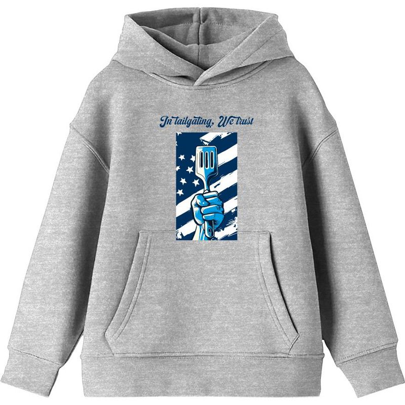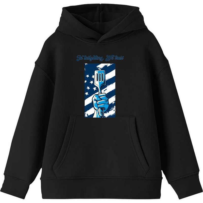 - غطاء رأس متصل: يتضمن هذا القميص "In Tailgating We Trust" غطاء رأس متصل لضمان بقائك دافئًا وأنيقًا في الطقس البارد.